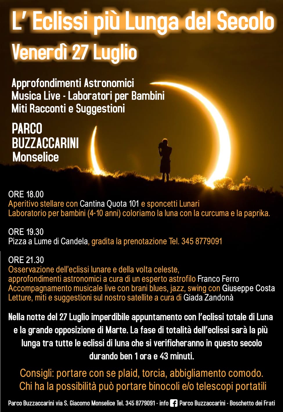 La fase di totalità dell’eclissi sarà la più lunga tra tutte le eclissi di luna che si verificheranno in questo secolo, durando ben 1 e 43 minuti…. ed il Parco vi offre una serata Lunare!